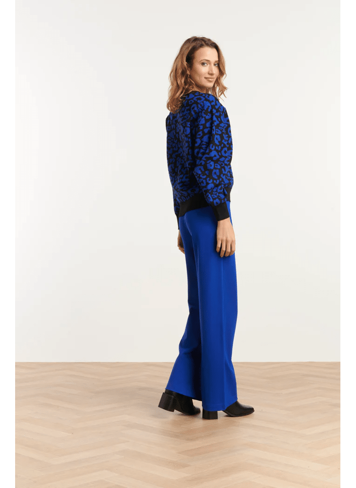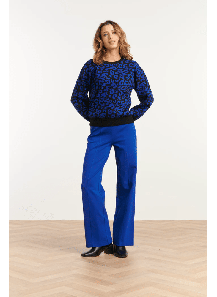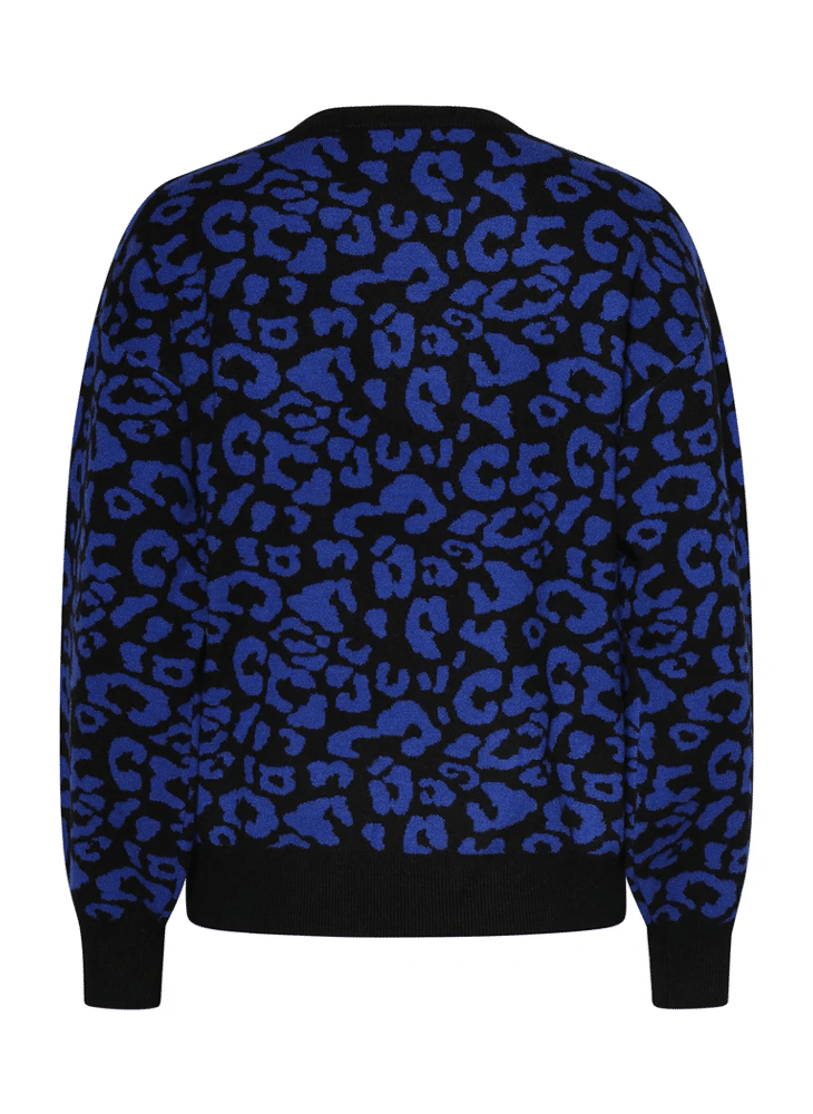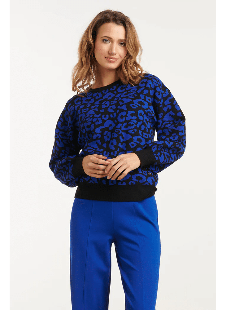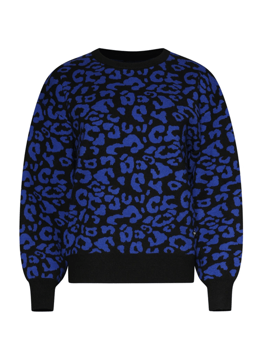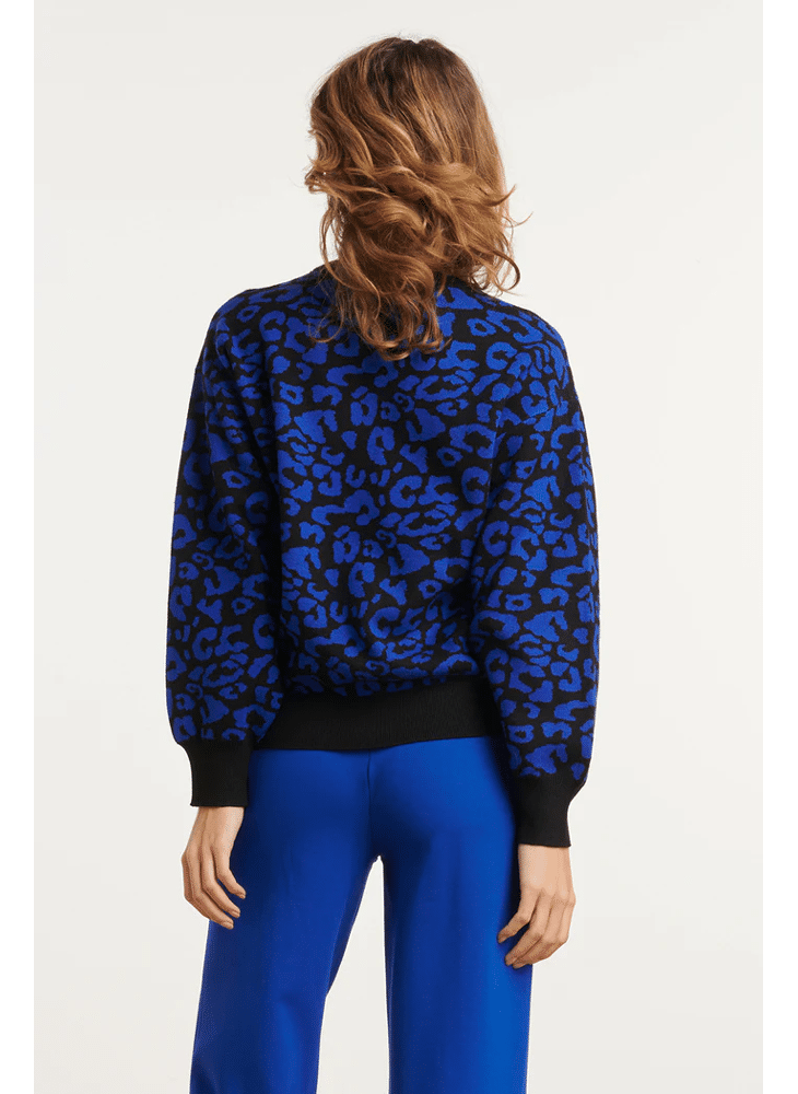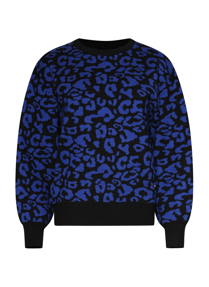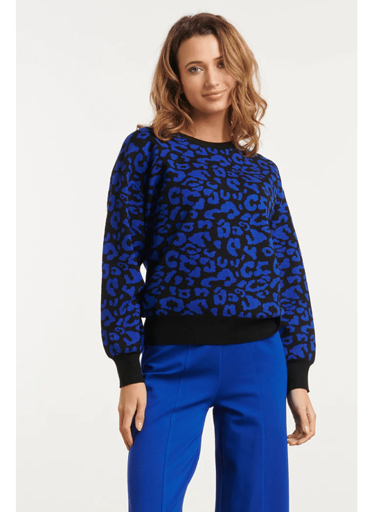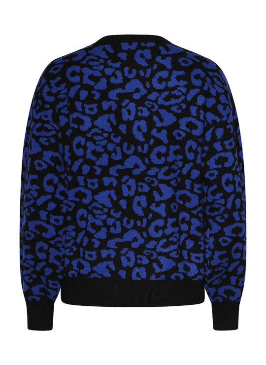 25741 – Gebreide Top Met Dierenprint | Black - Cobalt