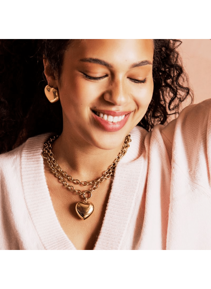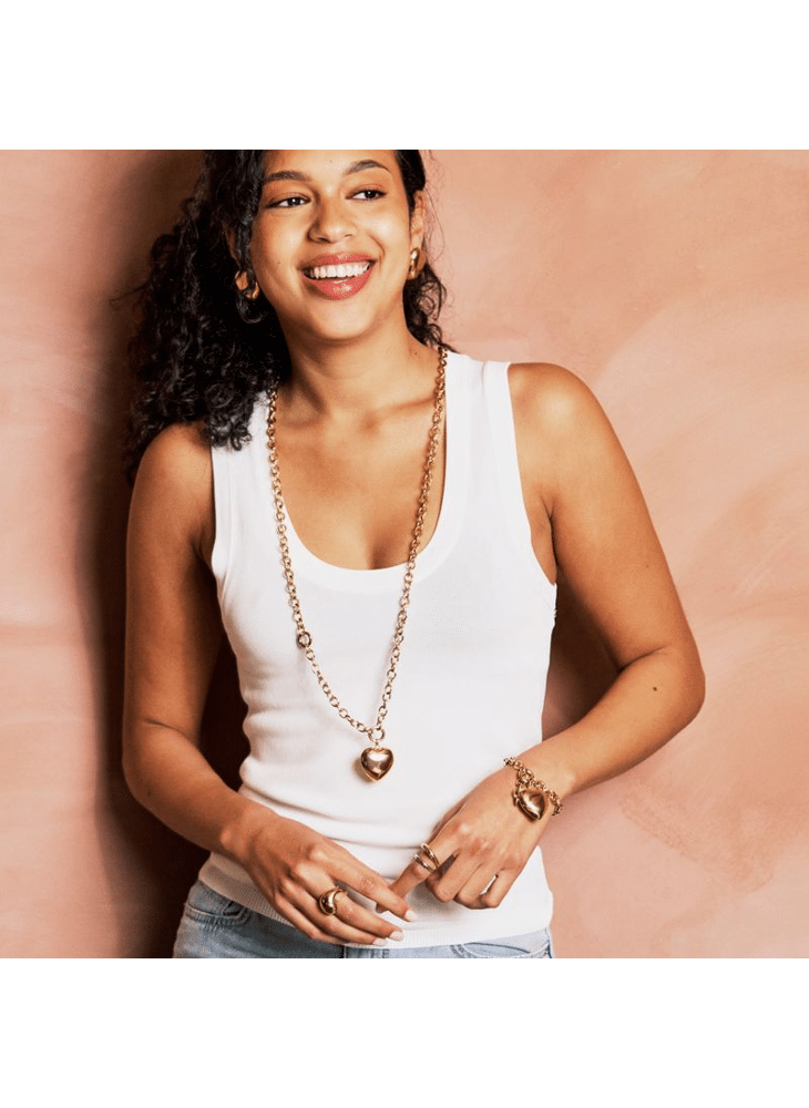 ACB22899 Ketting staal goudkleurig hart XXL