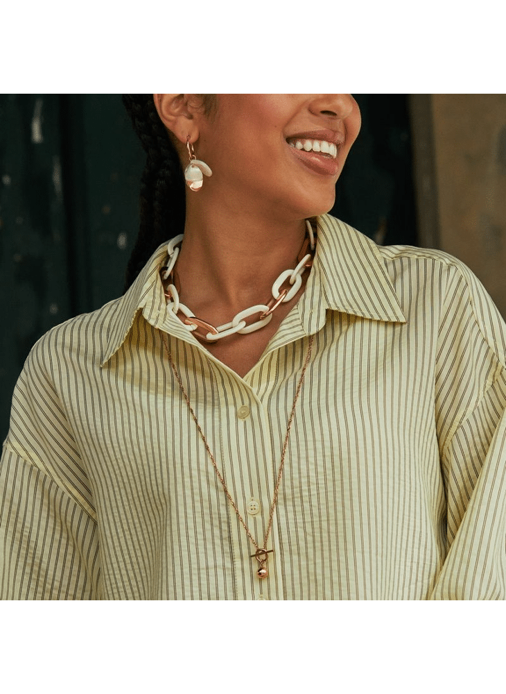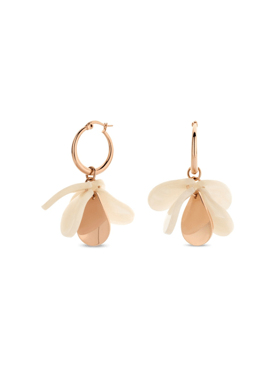 AY01500 Creolen rosékleurig staal blaadjes en crèmekleurige epoxy