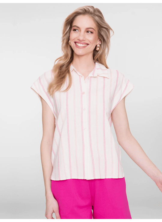 BLOUSE STRIPE OFFWHITE/PINK/SILVER/GOLD