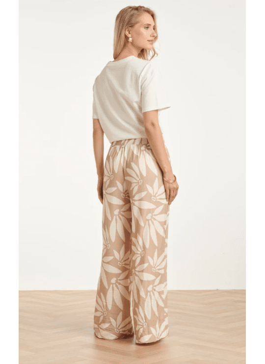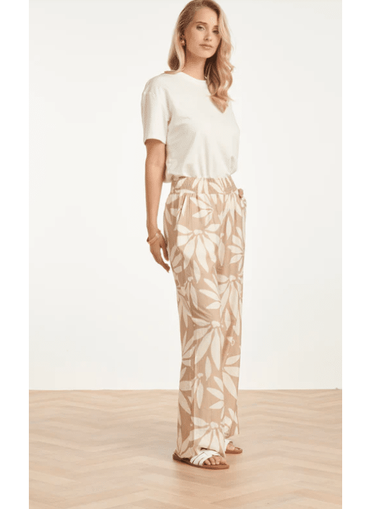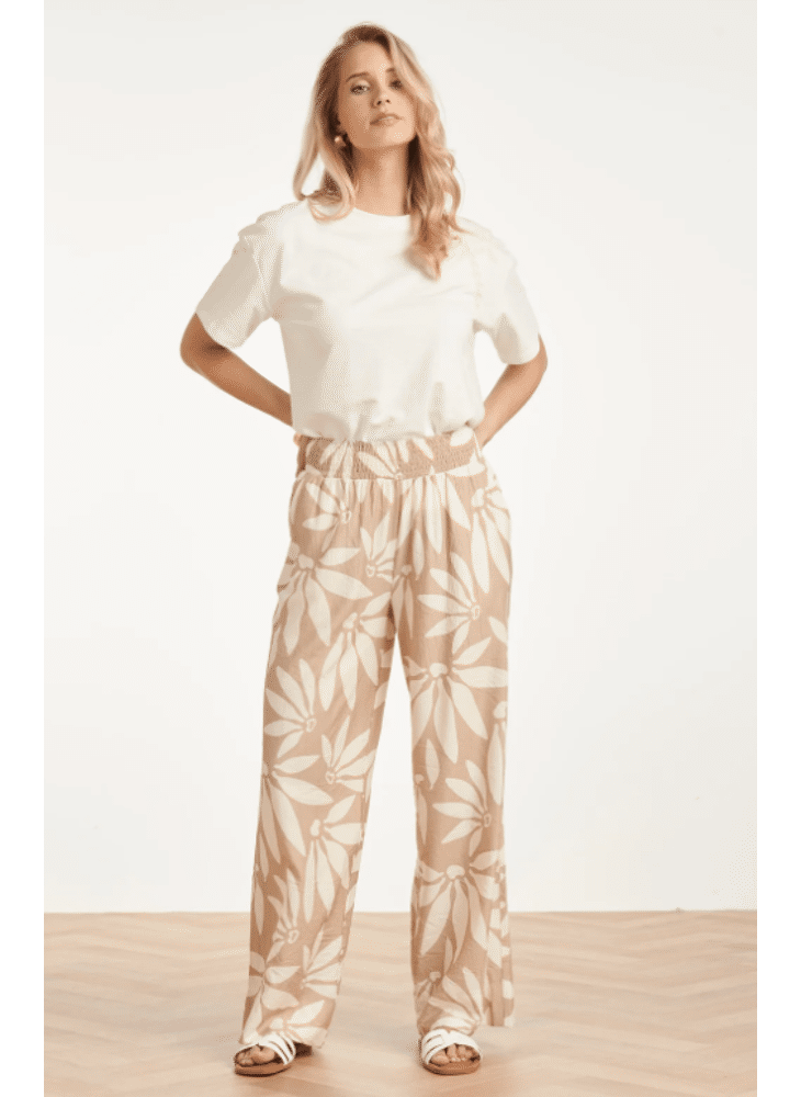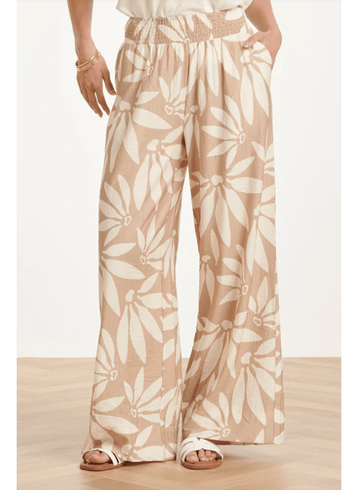 Ga voor ultiem comfort zonder in te leveren op stijl met deze wide leg broek van Smashed Lemon. De broek is uitgevoerd in een rustgevende beige tint met een abstract wit bloemprint. De elastische tailleband zorgt ervoor dat de broek de hele dag perfect zit, terwijl de wijde pijpen een modieuze en luchtige uitstraling geven. Een prachtig item van Smashed Lemon voor een relaxte, zomerse dag. Belangrijkste kenmerken: Luchtige snit: Trendy wide leg model voor een elegante en vrije beweging. Draagcomfort: Brede elastische tailleband voor een optimale pasvorm. Zacht kleurenpalet: Abstracte bloemprint in naturel beige en wit.