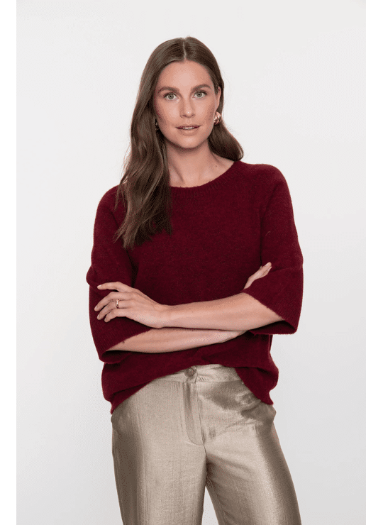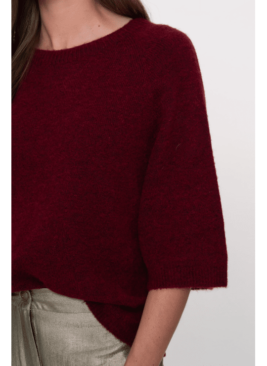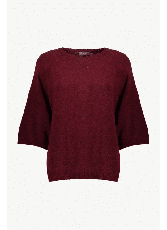 Geisha dames gebreide trui met korte 3/4 mouw in bordeauxrood