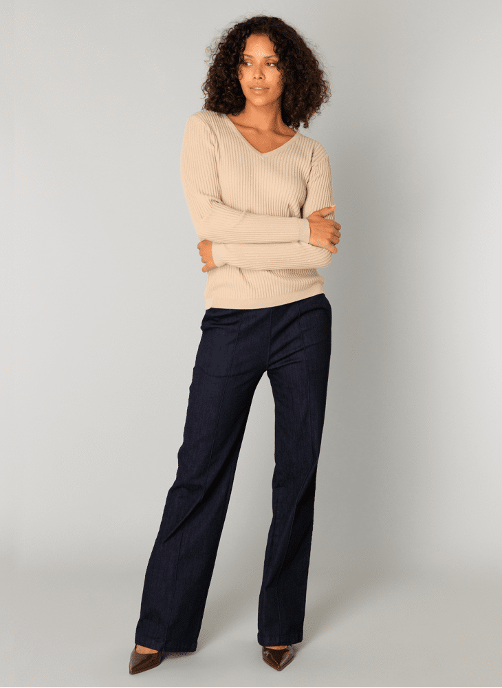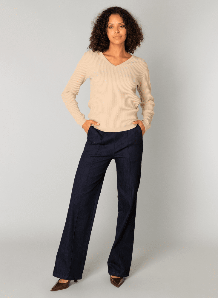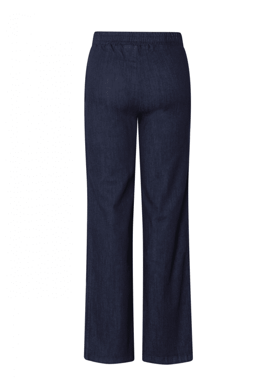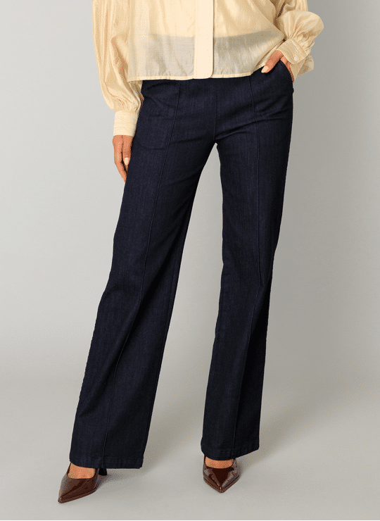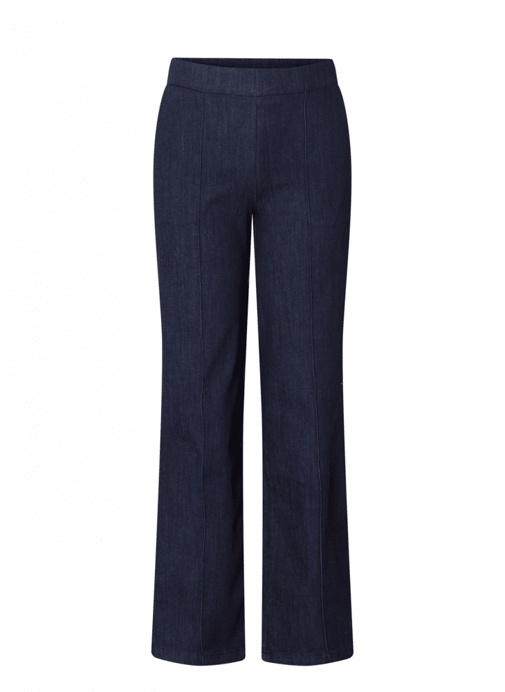 Deze wijde denim broek in dark rinse is je nieuwe go-to voor comfort met een cool randje. De elastische tailleband zit heerlijk, en die naad over het middenbeen geeft ‘m nét dat beetje extra. Met de steekzakken erbij is ‘ie ook nog eens superpraktisch.